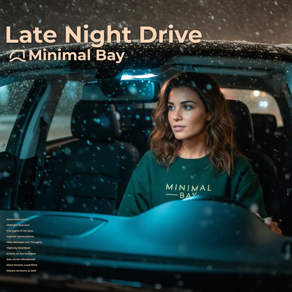 “Late Night Drive” is the latest album by Minimal Bay, a ten–track Lofi journey made for quiet nights, empty roads, and drifting thoughts. Each song is built around mellow grooves, warm Rhodes‑style chords, and soft, laid‑back drums that feel like a slow cruise through the city after midnight.